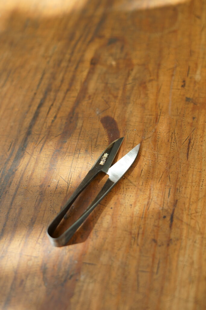 糸切はさみは庄三郎の守町(短刃型)のイブシ。